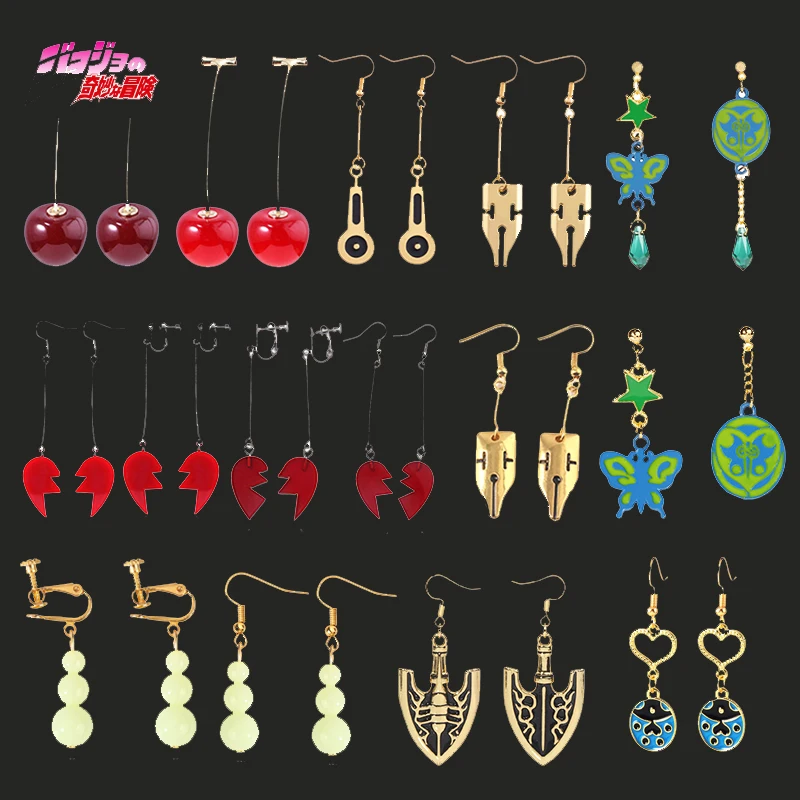 Anime JoJo Bizarre Adventure Drop Earrings Cosplay Props JOJO Kakyoin Noriaki Cherry Earrings Ear Clip Men Girl Jewelry Gift