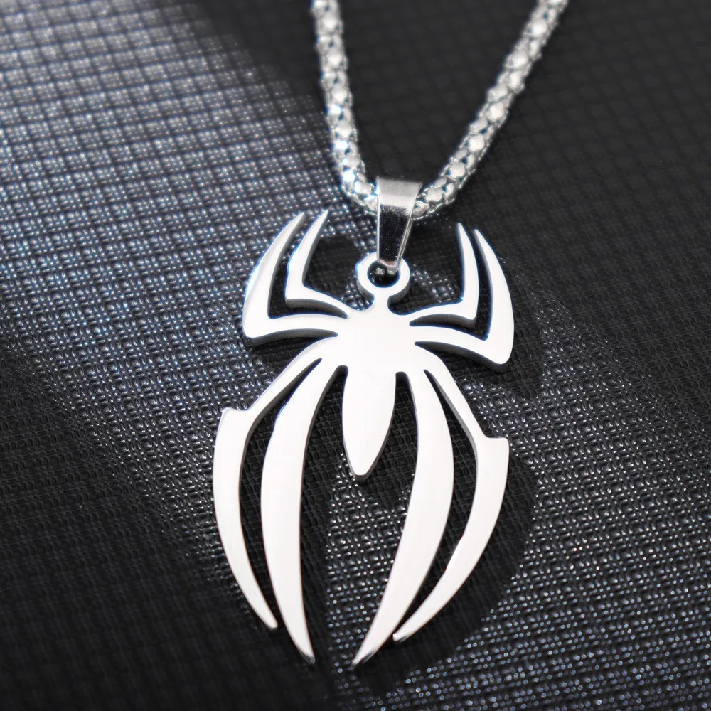 HNSP Stainless Steel Spider Pendant Chain Necklace For Men Boy Anime Jewelry Accessories
